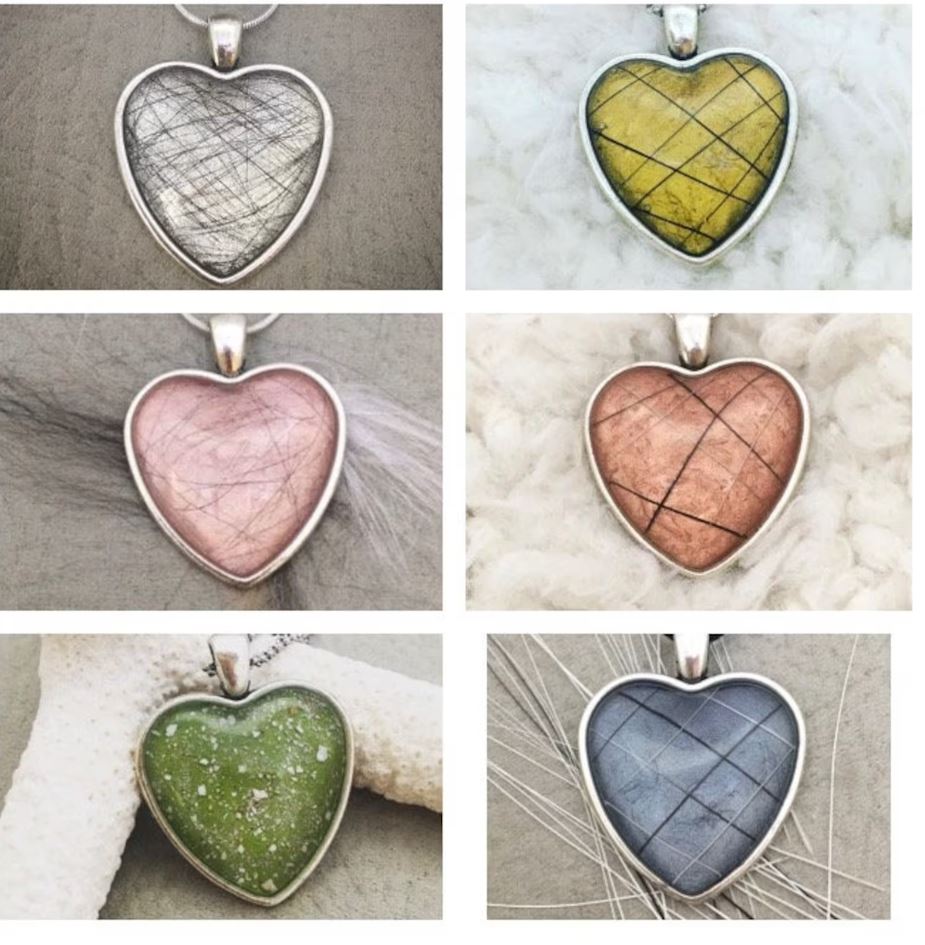 Create the ultimate wearable tribute honoring your own four footed friend! Your pet's whiskers or cremains will be carefully custom set into our 21mm x 18mm or 30mm hearts and sealed with a waterproof epoxy resin and glass cabochon.